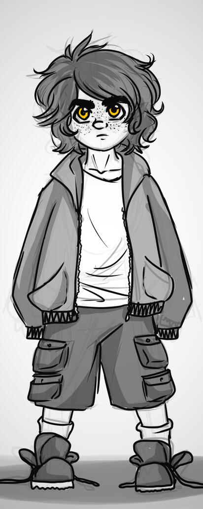 There isn't much to say about 10 year old Achim other than he is a wild little shit set on causing problems. Alone in a big city, his survival depends on him hunting squirrels, cats or other critters and eating them raw. Or maybe stealing cheeseburgers from careless people's plates in the city center. At night he would sleep in trees, on warm streets vents or whenever he could. His clothes are way too big for him, and whenever they get too dirty he would steal new ones. A truly feral child that doesn't understand how the world works and is in full survival mode while also having a lot of devious fun.